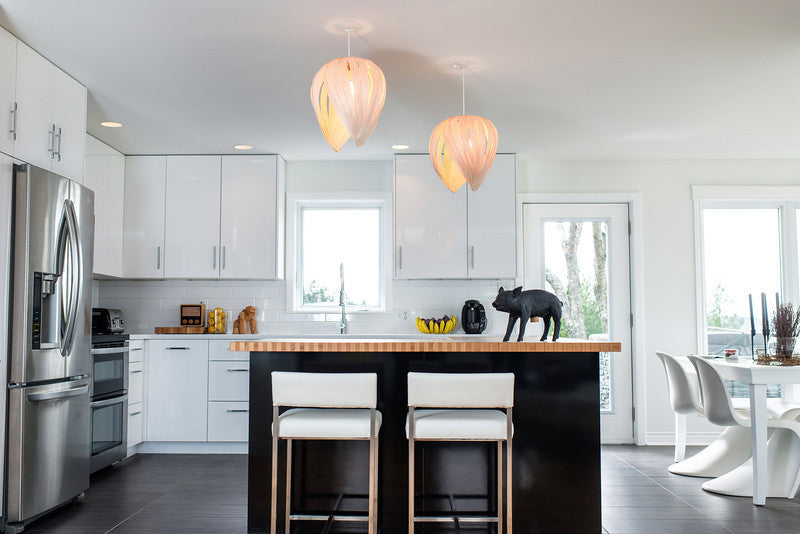 The Noisette #1 / White Birch hanging lamp blends classic design with soft floral inspiration, crafted from pale wood for a delicate, natural look. Expertly shaped to enhance any room, its understated elegance provides gentle illumination, creating a warm and inviting atmosphere. This timeless piece harmonizes function and artistry, perfect for those seeking refined lighting with subtle organic charm.