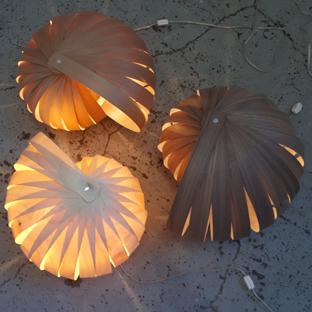 The Caracol / Red Birch table lamp features a design inspired by the elegant spiral of a snail shell, crafted from warm red birch wood. Its warm, natural texture and cozy glow make it perfect for enhancing the ambiance of bedrooms and living rooms. This expertly crafted lamp blends organic form with functional lighting to create a serene and inviting atmosphere in any living space.