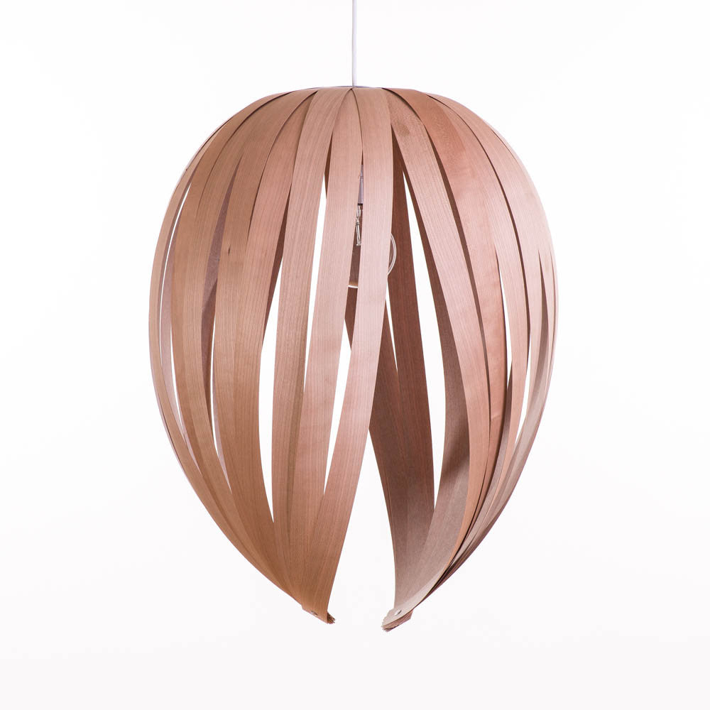 Elevate your interiors with the Gladys Large hanging lamp crafted from red birch. Its sculptural, semi-open design brings a natural, floral elegance that complements staircases, bedrooms, or living rooms. This timeless piece emits a warm, inviting glow, harmonizing organic materials with refined craftsmanship to create an atmosphere of enduring beauty and comfort. Ideal for spaces where art meets function, the Gladys Large lamp offers both illuminating grace and a serene ambiance.