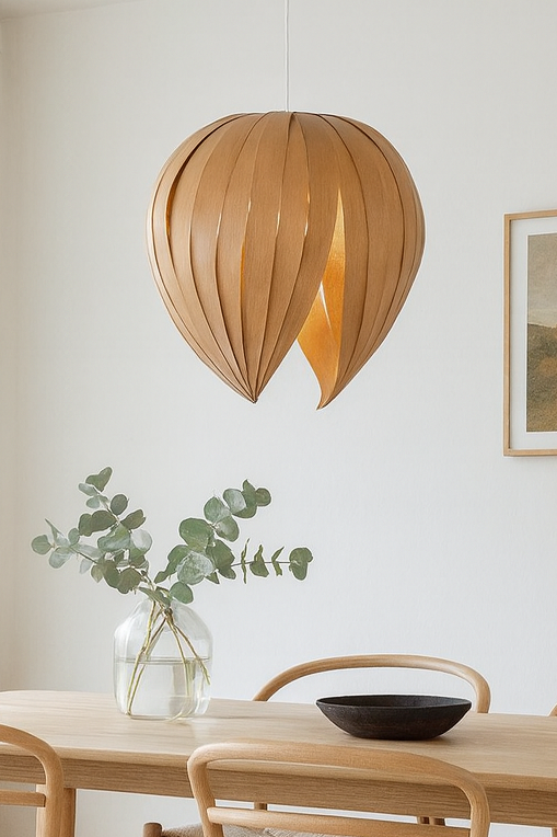 The Gladys Medium Red Birch semi-open hanging lamp blends natural elegance with timeless design, perfect for dining rooms, bedrooms, or living spaces. Crafted to provide gentle warmth and subtle floral inspiration, it enhances any setting with its refined yet inviting presence. Its versatile style complements diverse interiors while creating a cozy, sophisticated atmosphere.