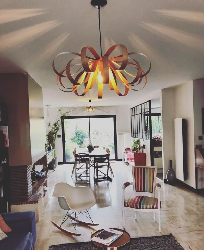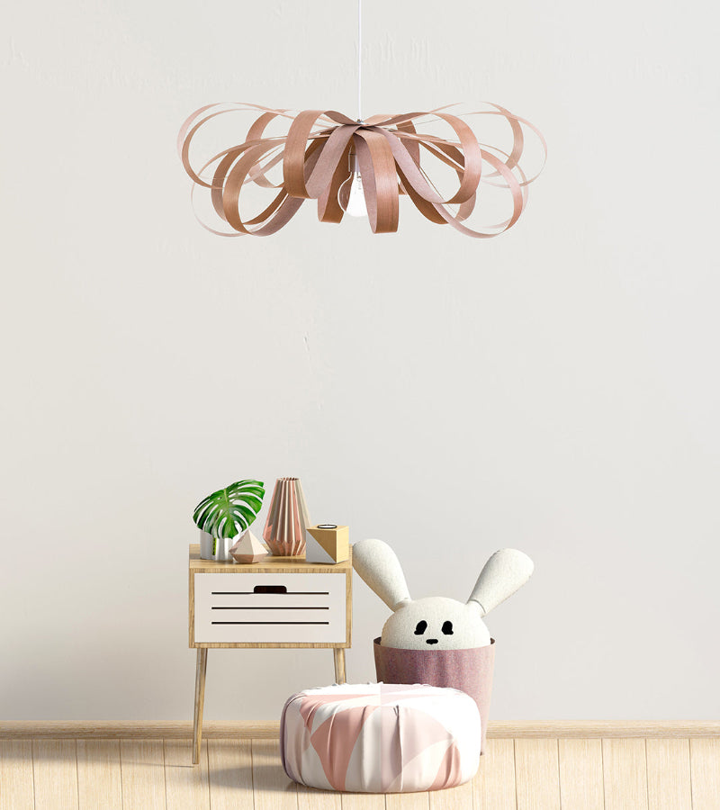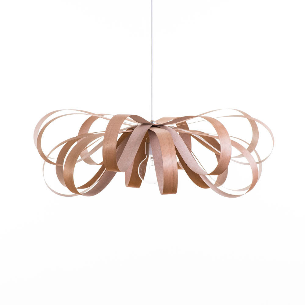 The June / Red Birch hanging lamp features a wide, floral-inspired silhouette crafted from natural wood, bringing the essence of nature indoors. Its light, airy design enhances the ambiance of dining rooms, bedrooms, and living rooms by casting a soft, inviting glow. This expertly crafted piece balances organic beauty with functional lighting, ideal for those seeking to elevate their space with subtle elegance and natural warmth.