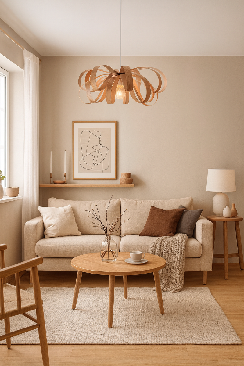 The June / Oak hanging lamp offers a refined blend of natural wood and floral-inspired design, creating a wide, light fixture ideal for dining rooms, bedrooms, and living areas. Its organic aesthetic and delicate structure provide soft, ambient lighting while enhancing interiors with a sense of nature’s tranquility. Expertly crafted, this lamp is both a functional light source and an artful addition that complements a variety of décor styles.