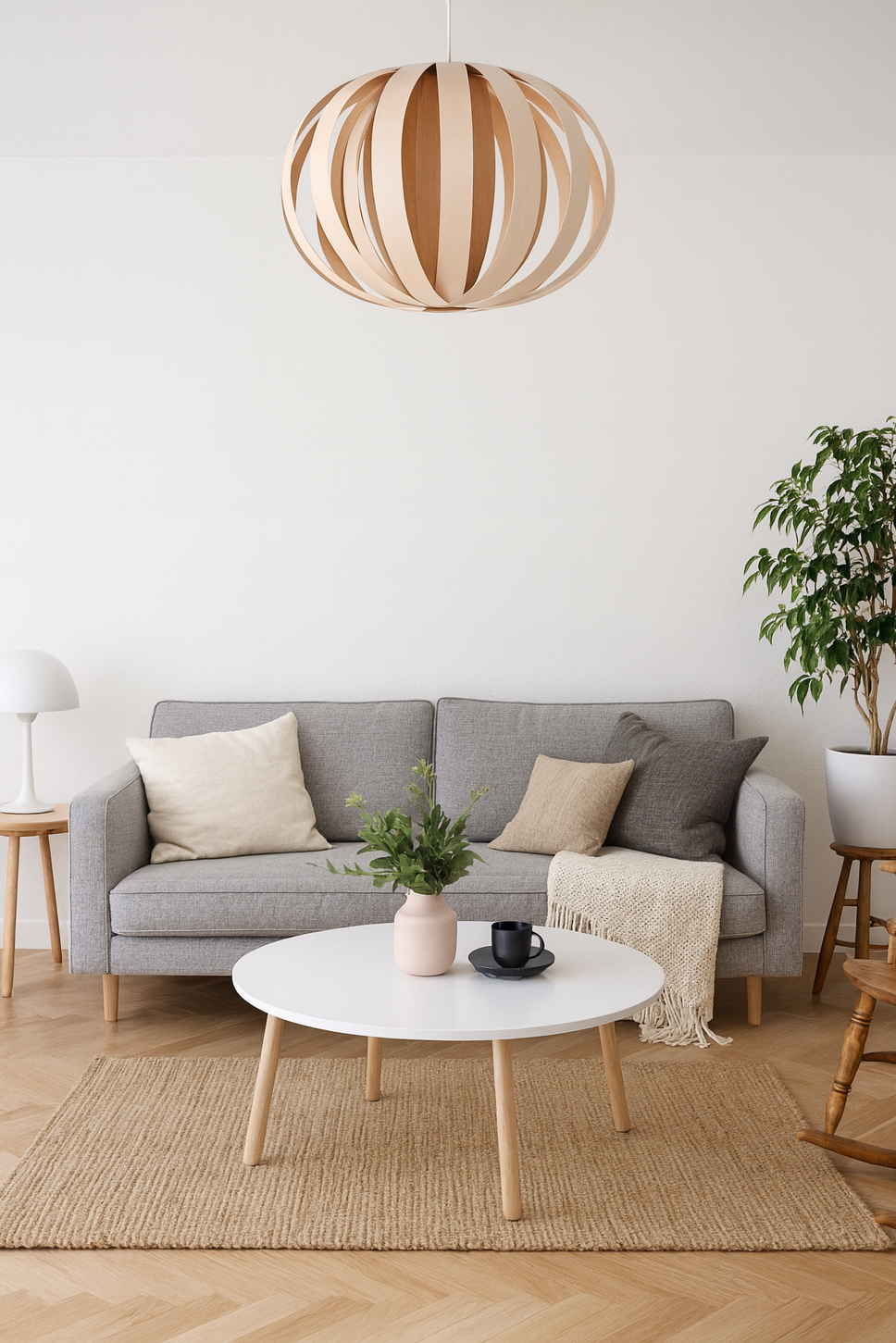 The Ruth Large lamp in maple and red birch offers a sculptural, two-tone design that combines classic mid-century aesthetics with a modern round silhouette. Its warm wood tones create an inviting atmosphere, making it ideal for bedrooms, dining rooms, or living spaces that seek both style and comfort. This hanging lamp serves as a refined focal point that enhances the character of any room while providing soft, ambient lighting.