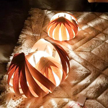 The Sol Large Oak table lamp is expertly designed from maple wood, featuring a unique lotus-inspired design that brings warmth and elegance to any space. Its soft, ambient light creates a cozy atmosphere, making it a perfect addition for enhancing both comfort and style in your home or office.