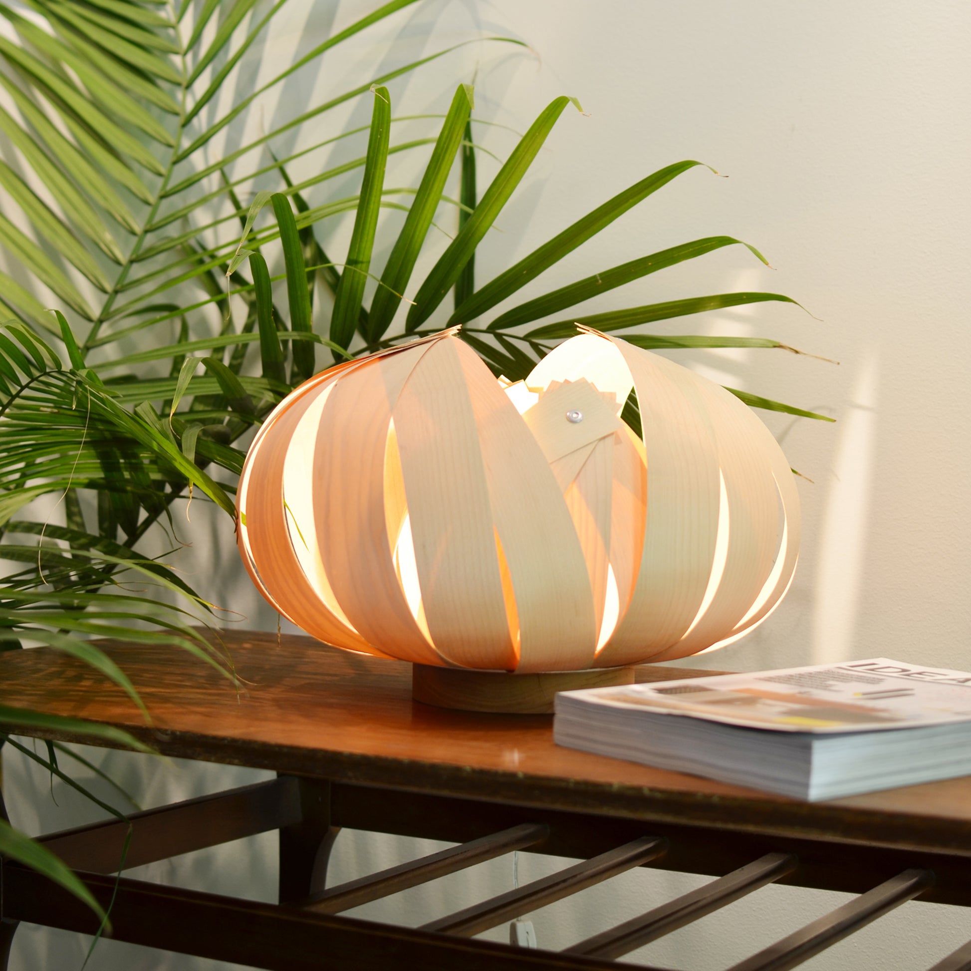 La lampe de table Sol Petite en érable s’inspire de la grâce du lotus. Elle diffuse une lumière douce et enveloppante, instaurant une atmosphère sereine et élégante. Alliance subtile de design organique et de savoir-faire raffiné, elle apporte une touche intemporelle de confort et de sophistication à tout intérieur.
